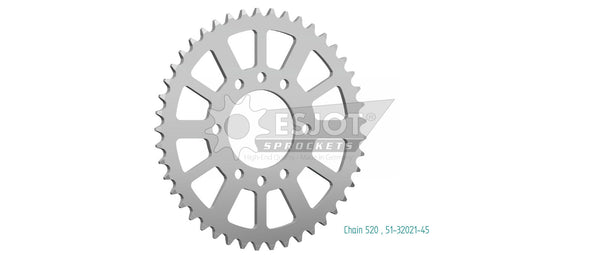 OD - ; ID - 76; Thickness - ; Brand - Esjot; Chain Pitch - 520; Teeth - 45; Weight - 0.36Fits: Single Sprocket OnlyESJOT aluminium sprockets have been developed...